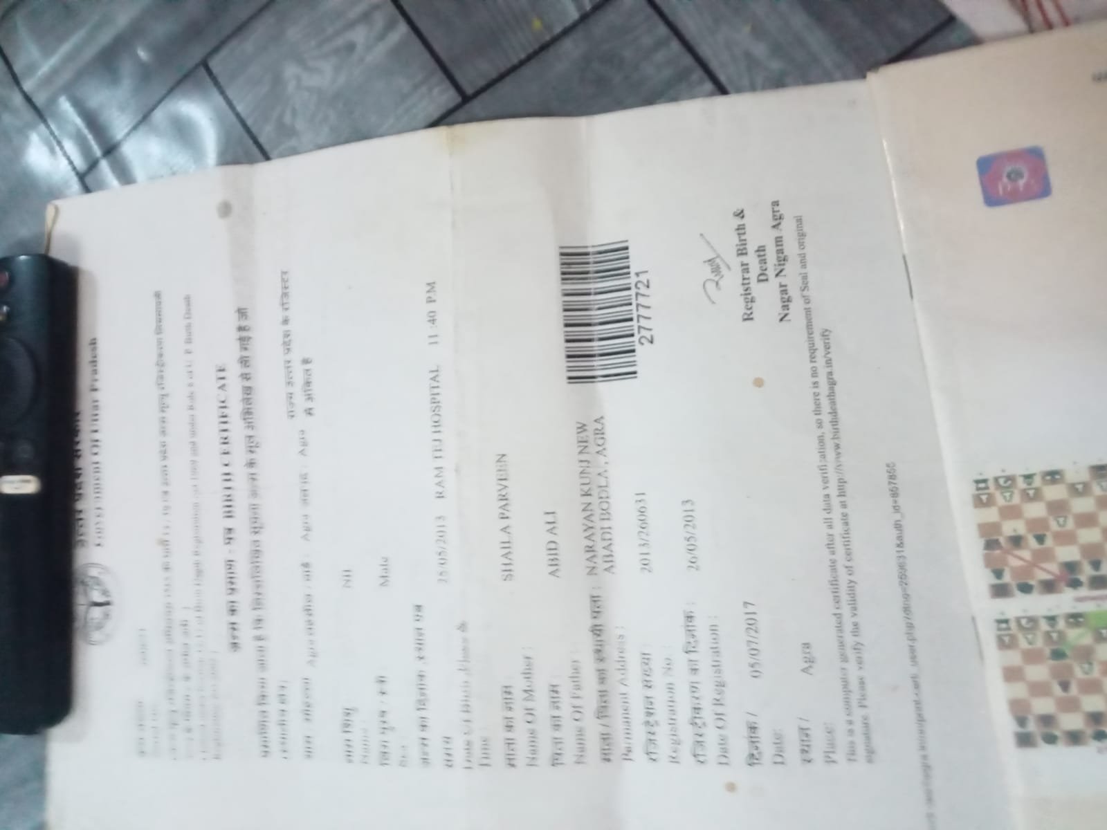 | Father's Name | Abid Ali | Gender | Male | Date of Birth | 25-05-2013 |