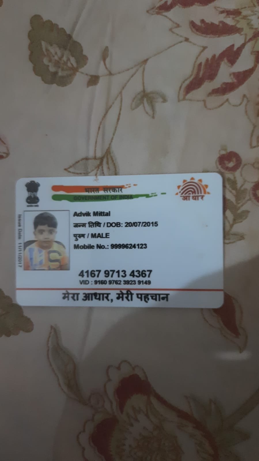 | Father's Name | MUKUL MITTAL | Gender | Male | Date of Birth | 20-07-2015 |