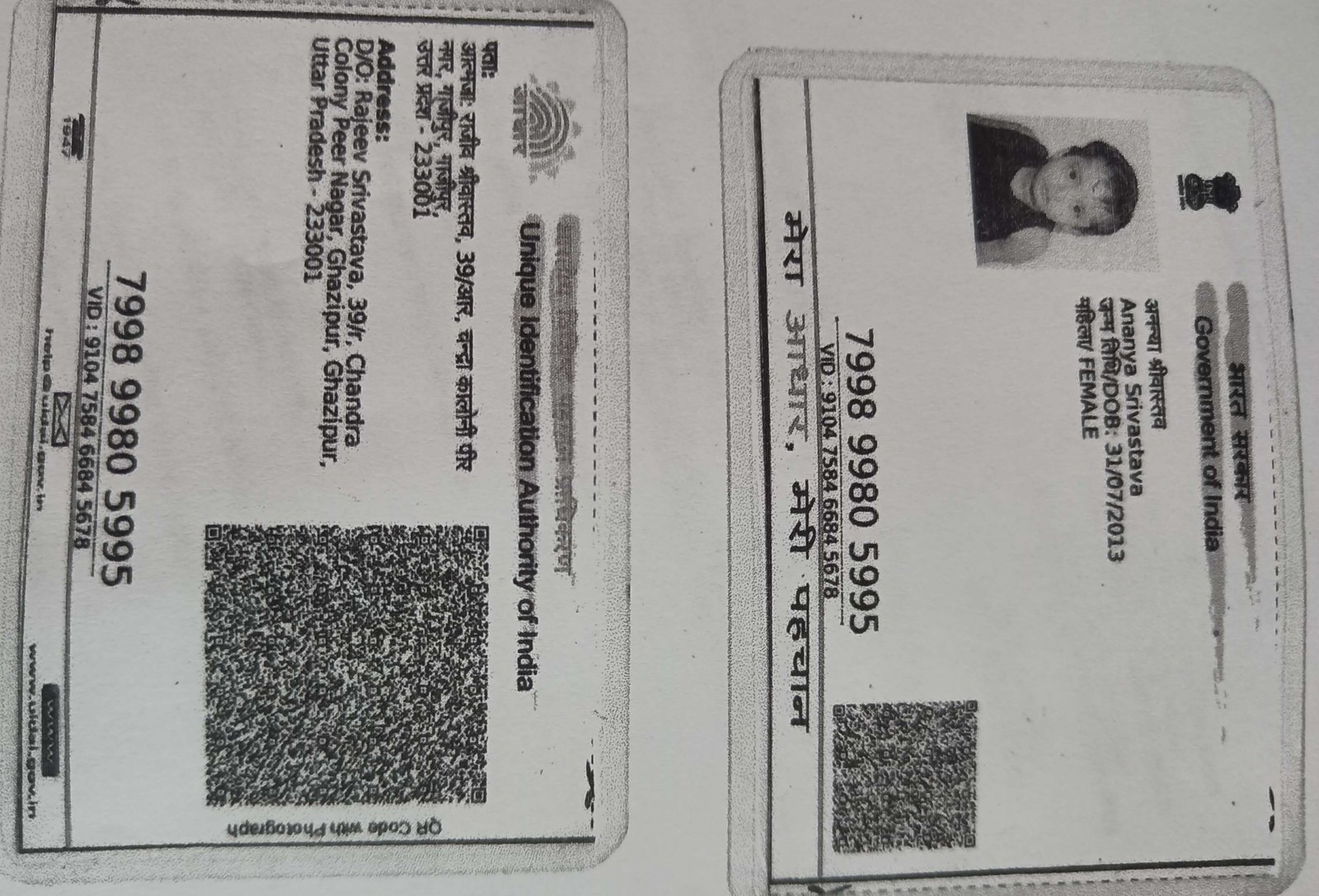 | Father's Name | Dr.Rajeev Srivastava | Gender | Female | Date of Birth | 31-07-2013 |