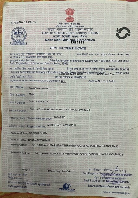 | Father's Name | Dr. Gaurav Kumar | Gender | Male | Date of Birth | 03-04-2015 |