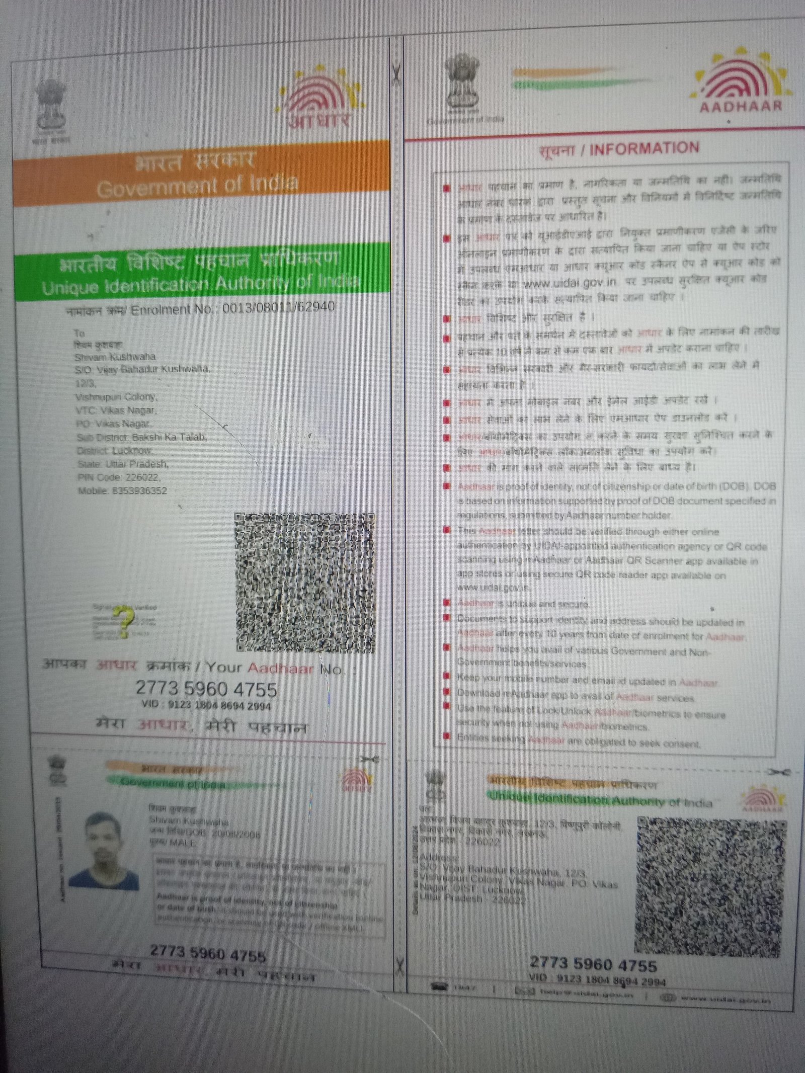 | Name | Shivam Kushwaha | shivammotivation8@gmail.com | Mobile No | 9517635633 | |