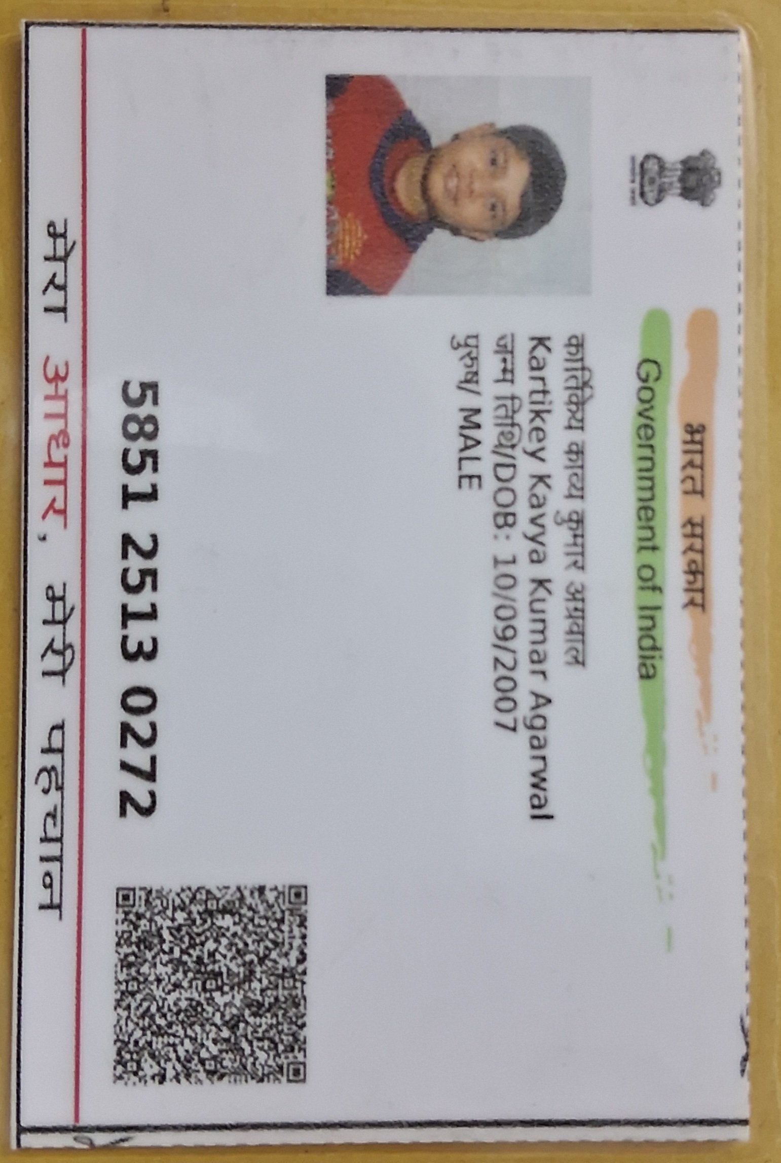 | Father's Name | SANJAY AGARWAL | Gender | Male | Date of Birth | 10-09-2007 |