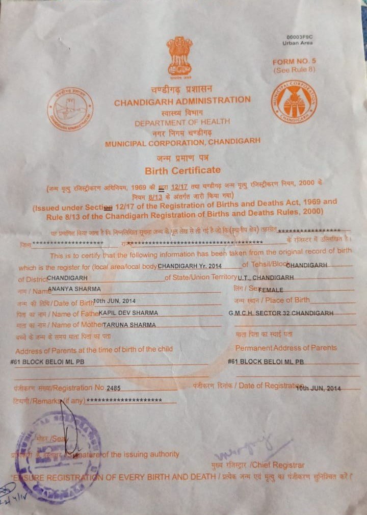 | Father's Name | KAPIL DEV SHARMA | Gender | Female | Date of Birth | 10-06-2014 |