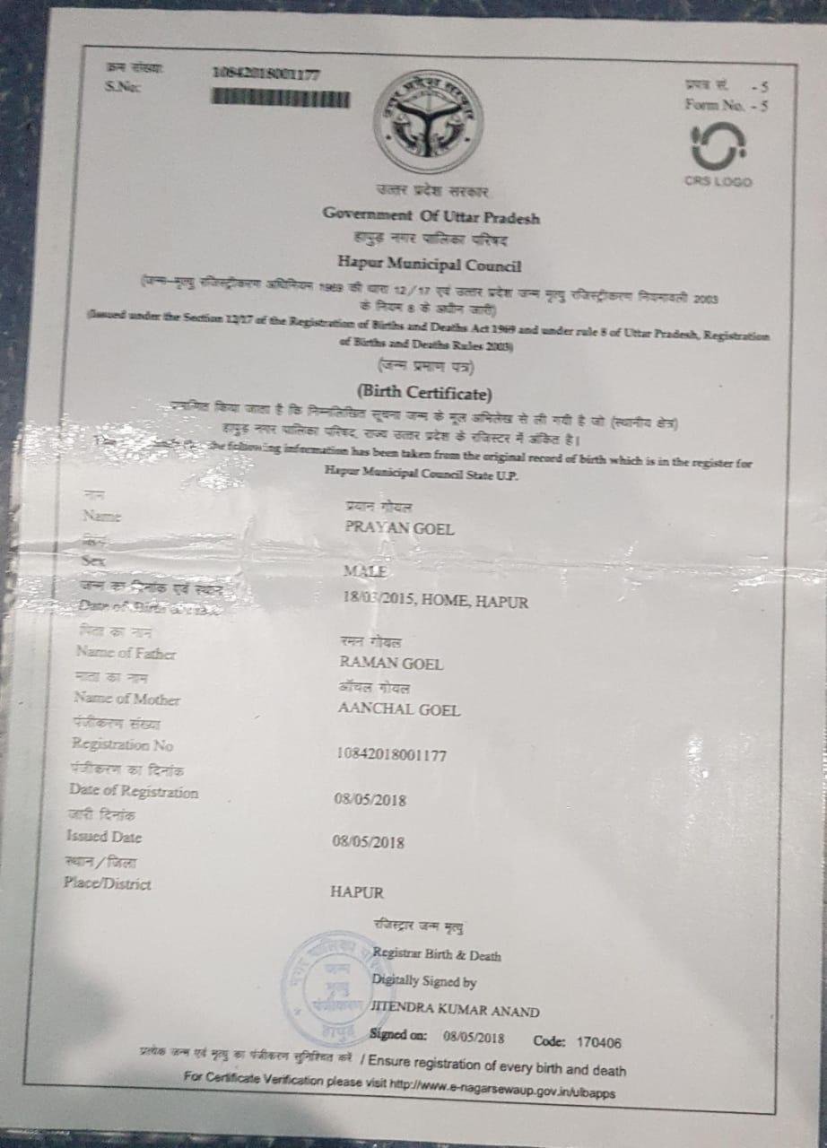 | Father's Name | Raman goel | Gender | Male | Date of Birth | 18-03-2015 |