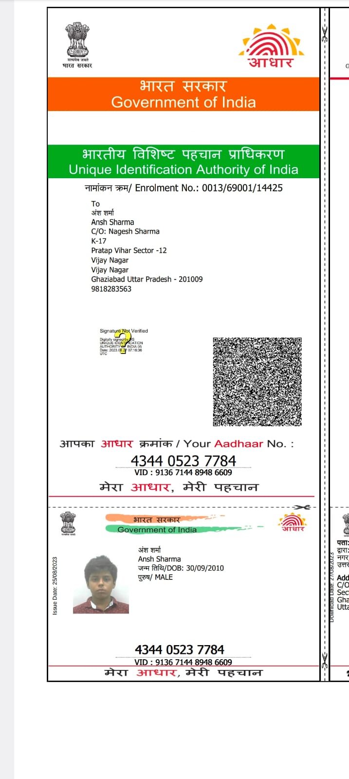 | Father's Name | Nagesh Sharma | Gender | Male | Date of Birth | 30-09-2010 |