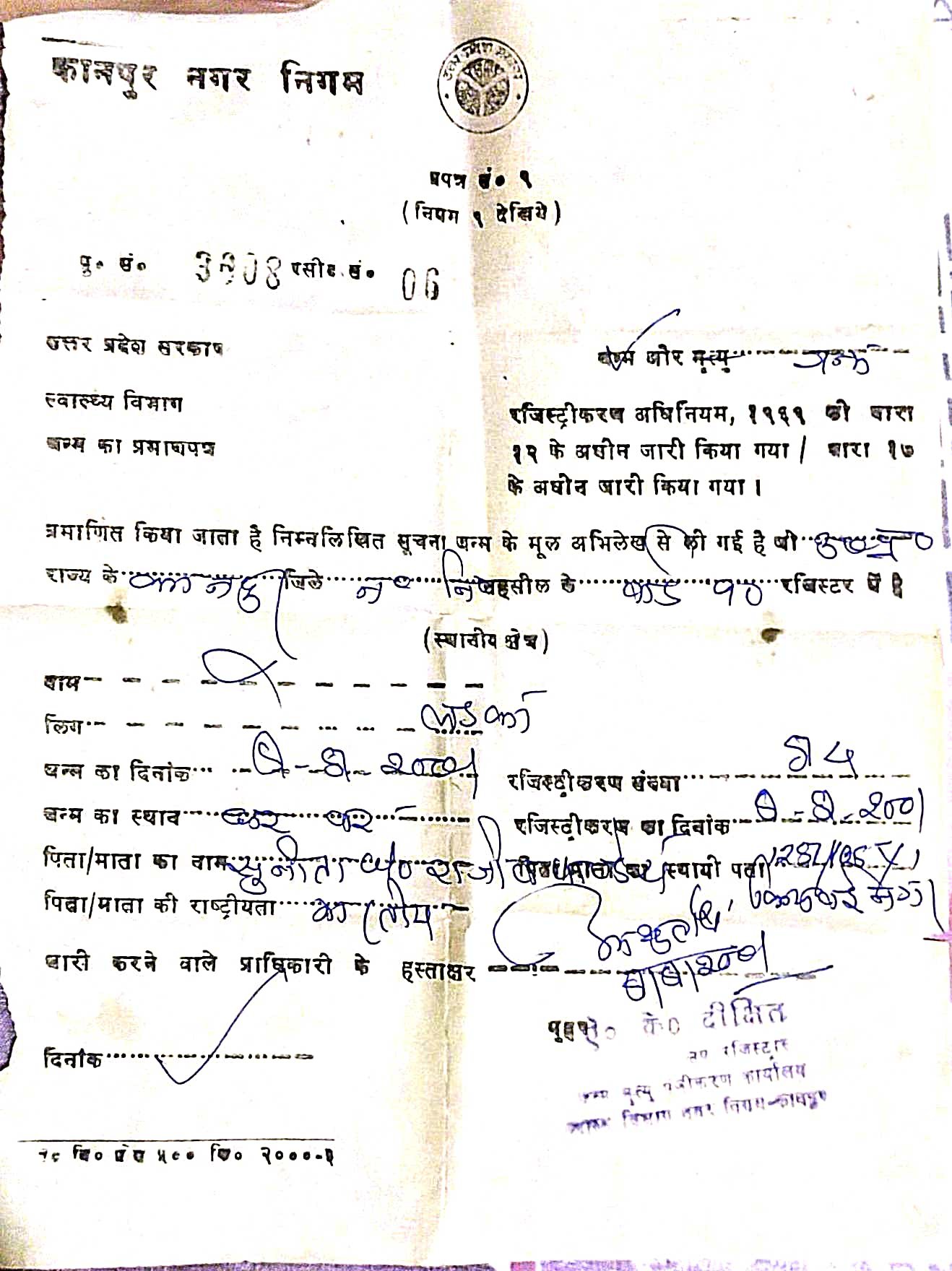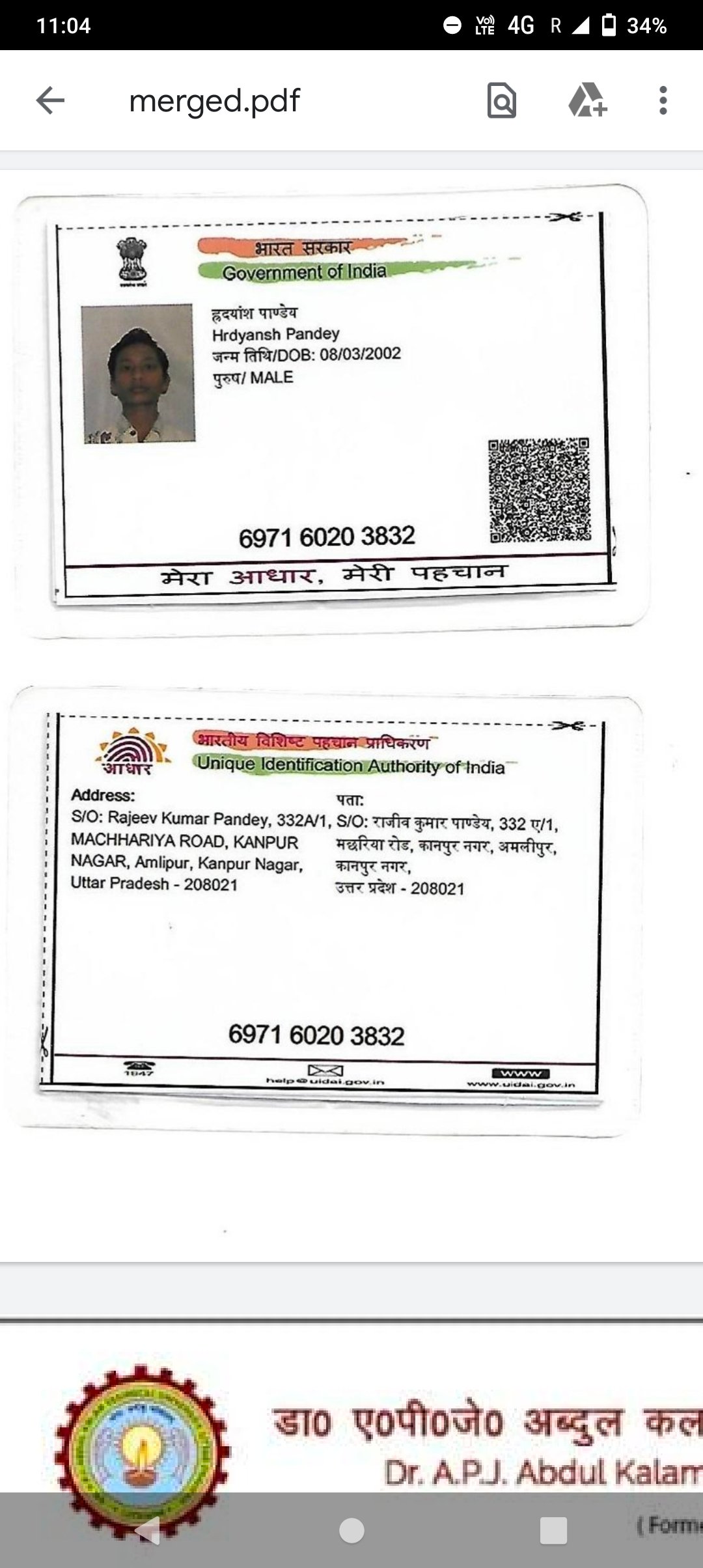 | Father's Name | Rajeev Kumar Pandey | Gender | Male | Date of Birth | 08-03-2002 |