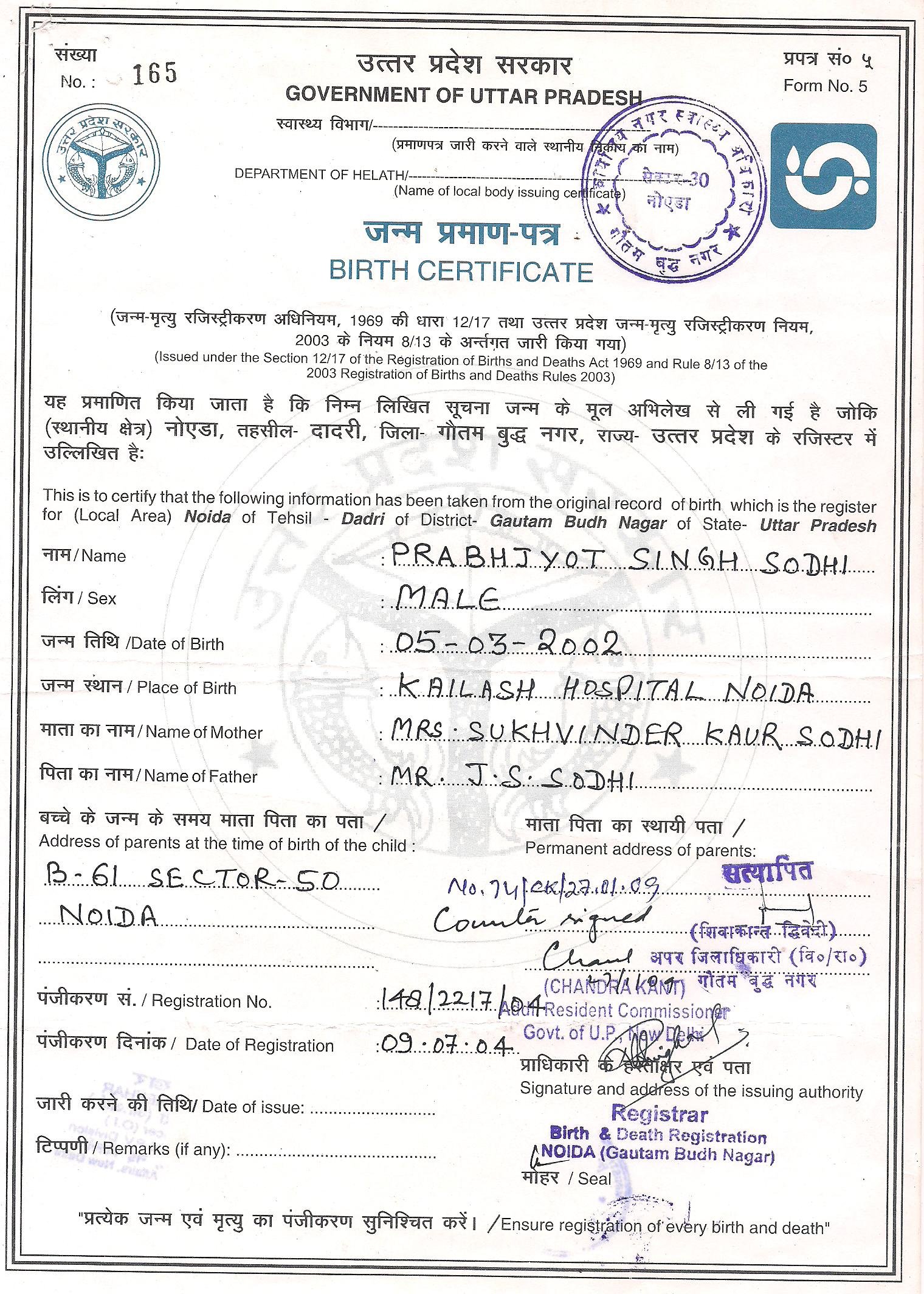 | Father's Name | Jagjeet Sodhi | Gender | Male | Date of Birth | 05-03-2002 |