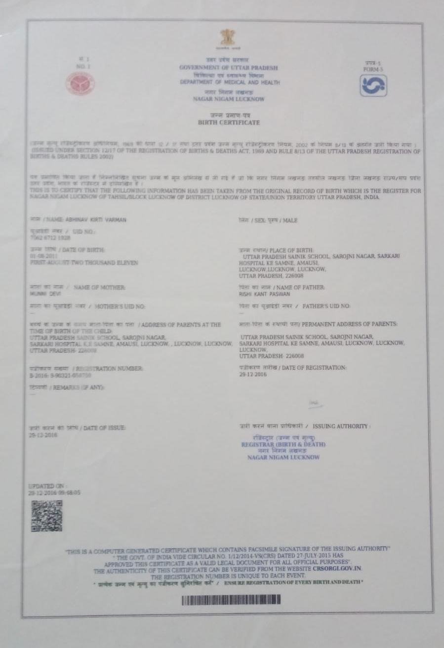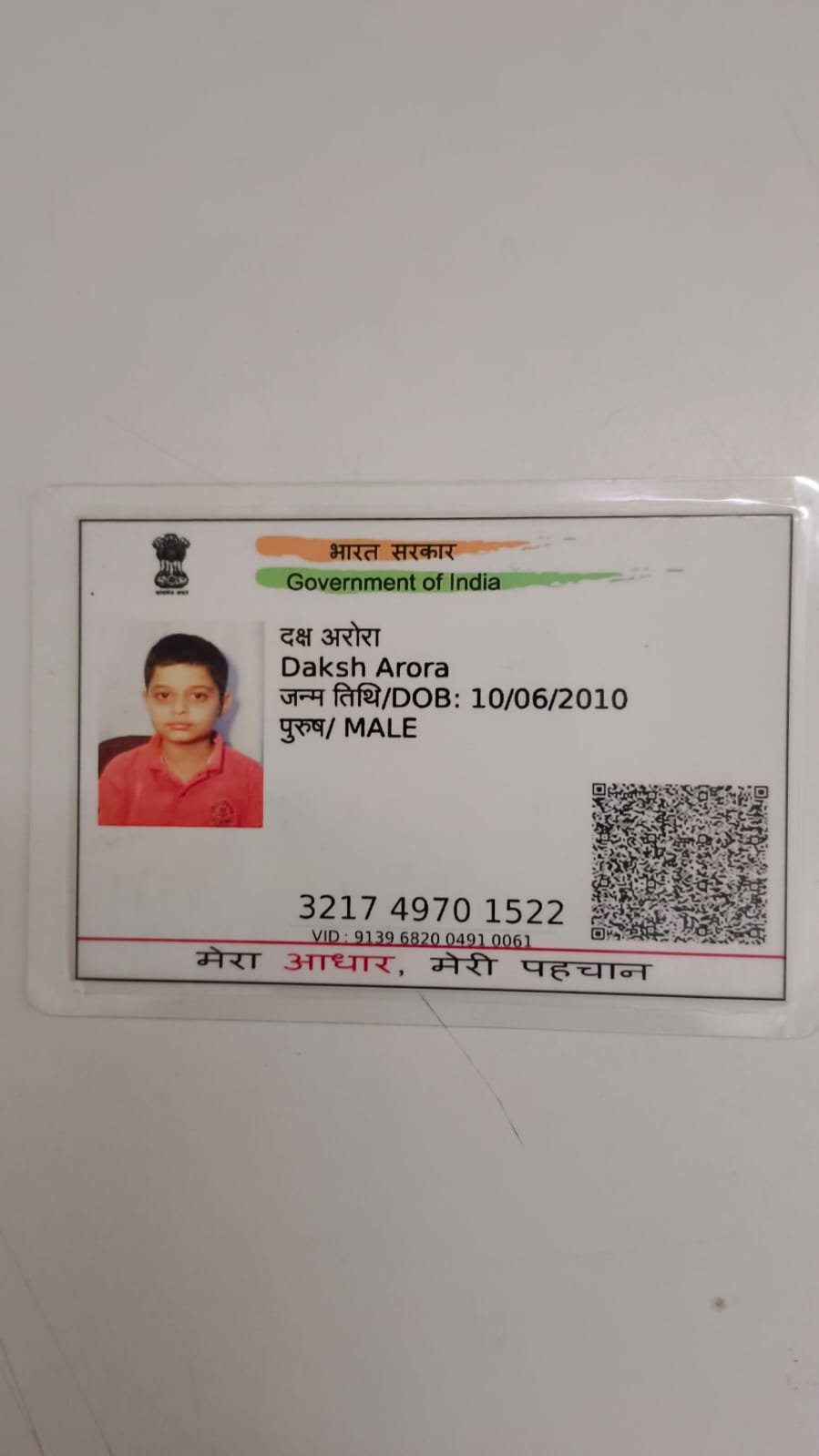 | Father's Name | Mr Ankur Arora | Gender | Male | Date of Birth | 10-06-2010 |