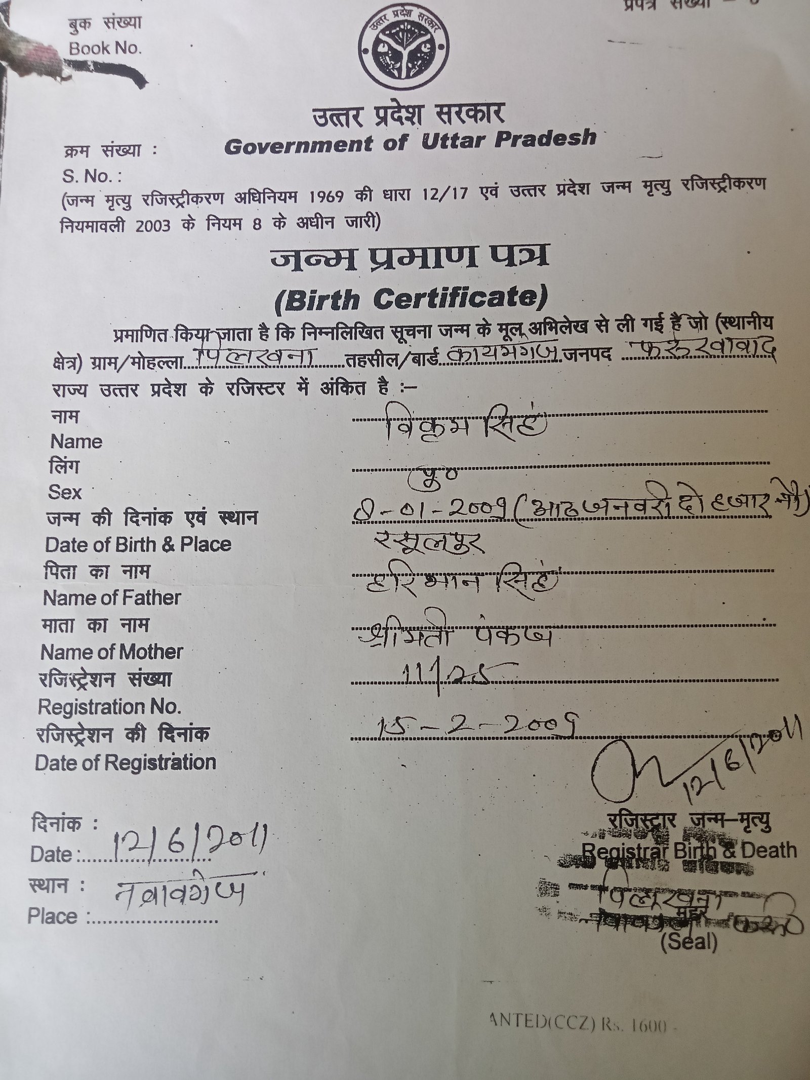 | Name | Vikram Singh Yadav | haribhansinghyadav80@gmail.com | Mobile No | 9557555136 | |