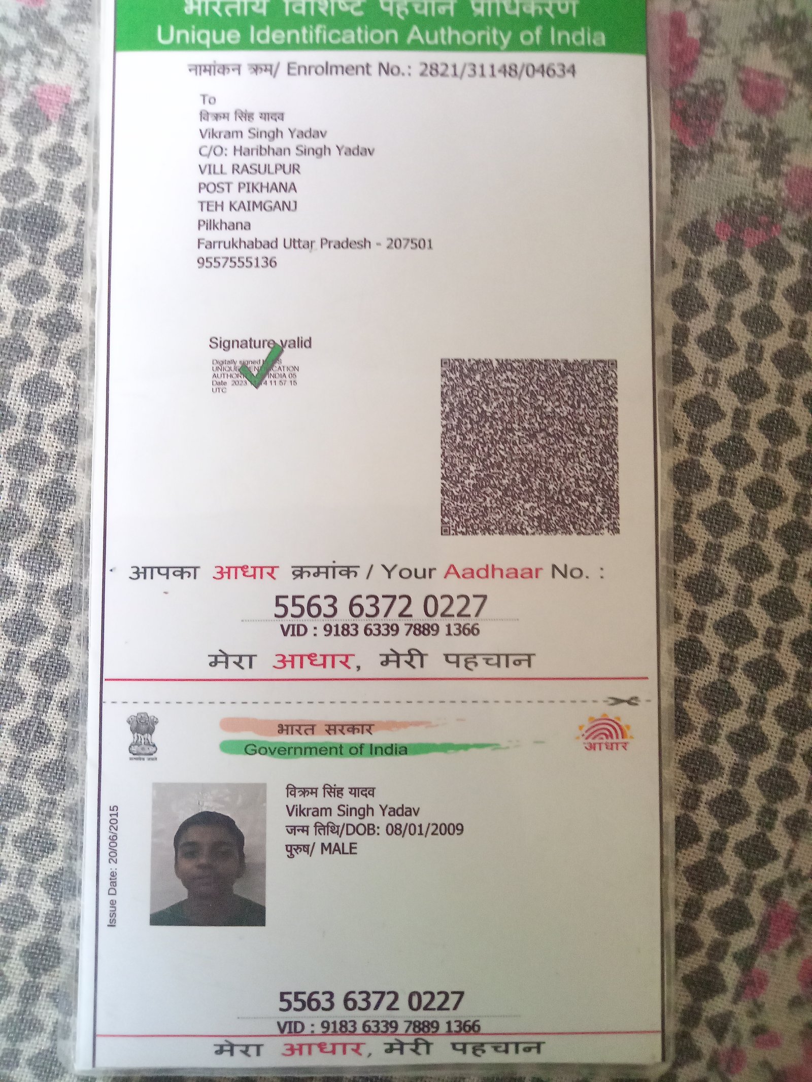 | Father's Name | Haribhan Singh Yadav | Gender | Male | Date of Birth | 08-01-2009 |