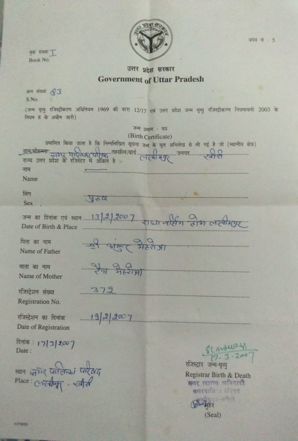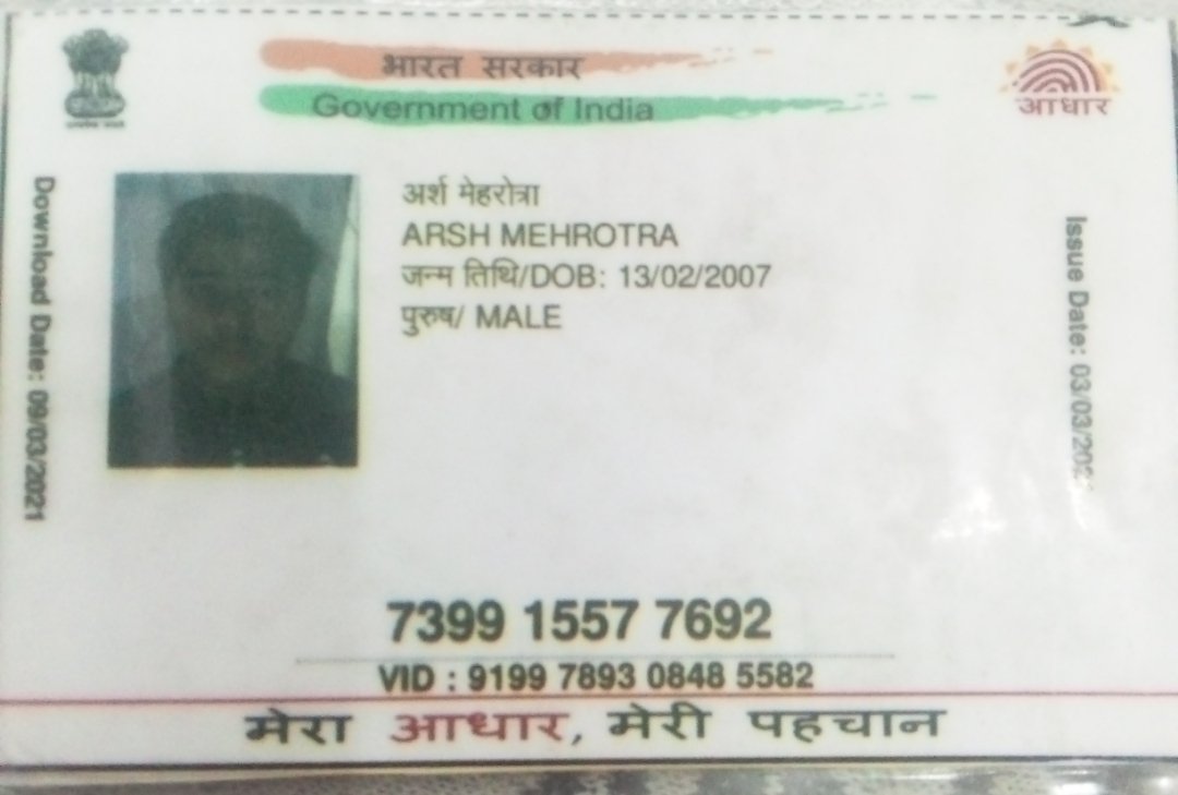 | Father's Name | Ankur Mehrotra | Gender | Male | Date of Birth | 13-02-2007 |