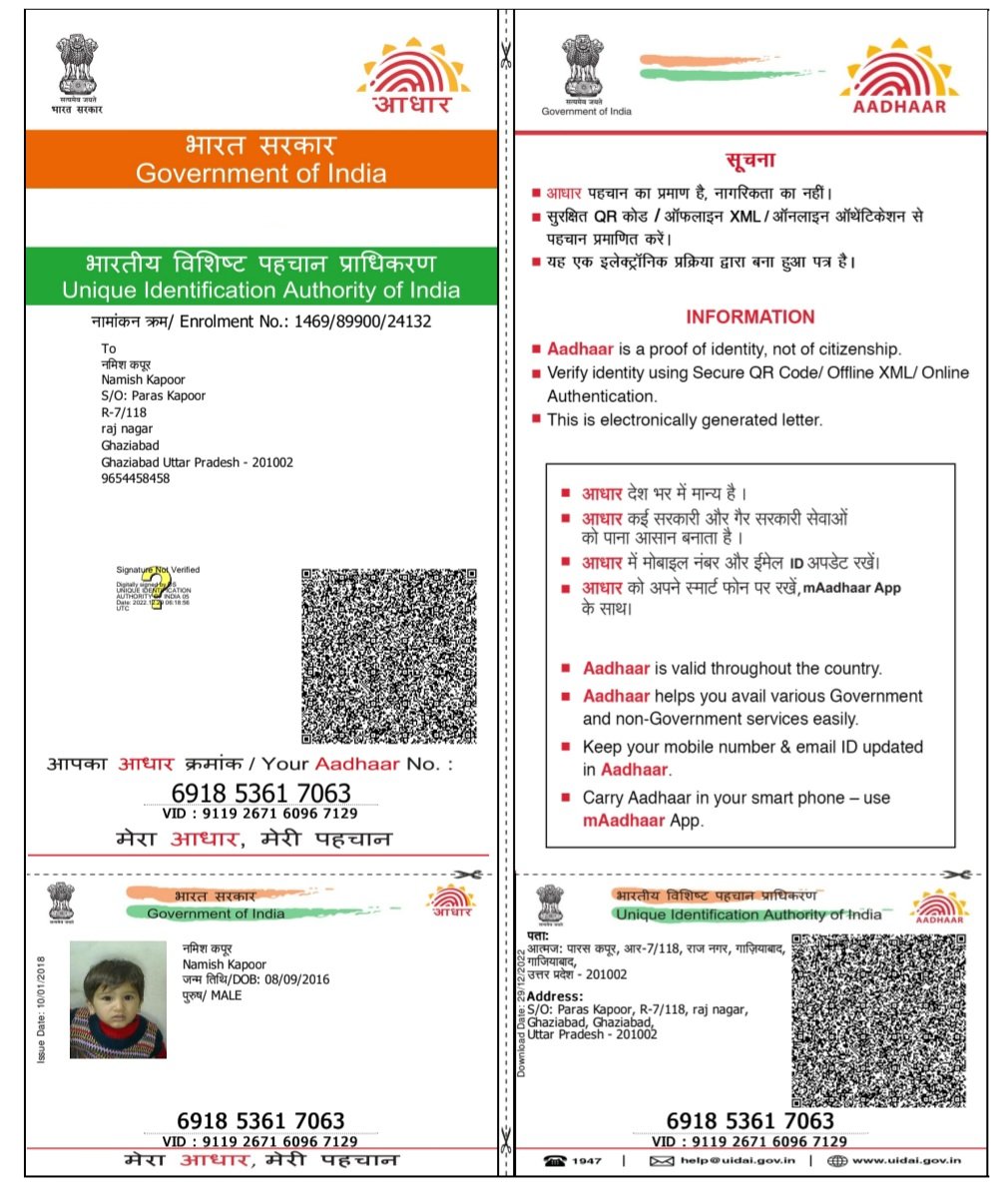 | Father's Name | PARAS KAPOOR | Gender | Male | Date of Birth | 08-09-2016 |