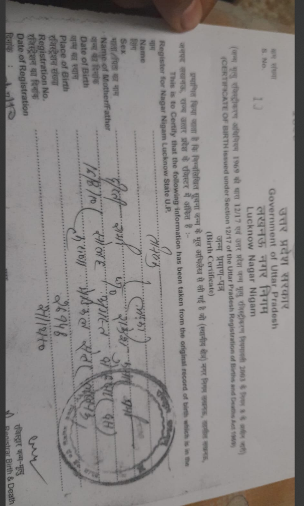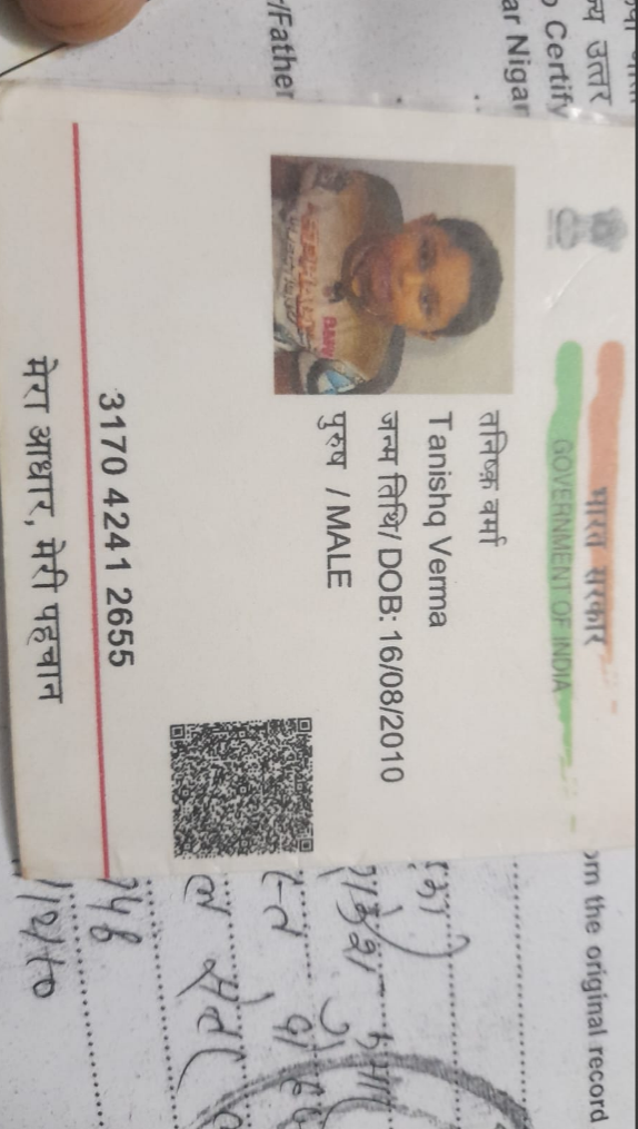 | Father's Name | rakesh kumar verma | Gender | Male | Date of Birth | 16-08-2010 |
