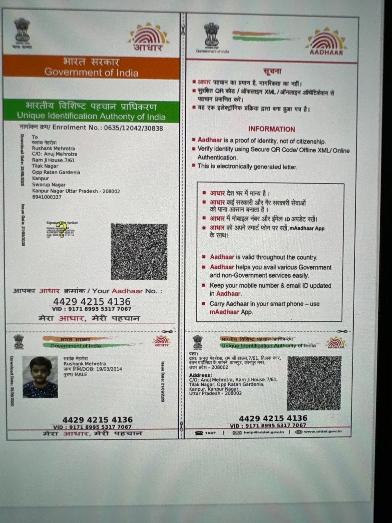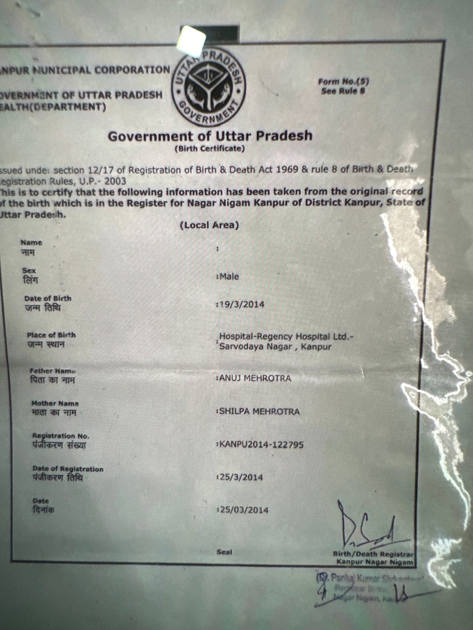 | Father's Name | Anuj Mehrotra | Gender | Male | Date of Birth | 19-03-2014 |