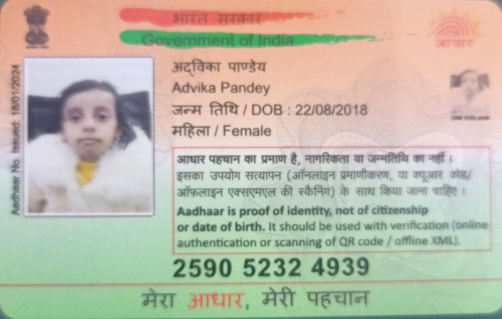 | Father's Name | abhishek pandey | Gender | Female | Date of Birth | 22-08-2018 |