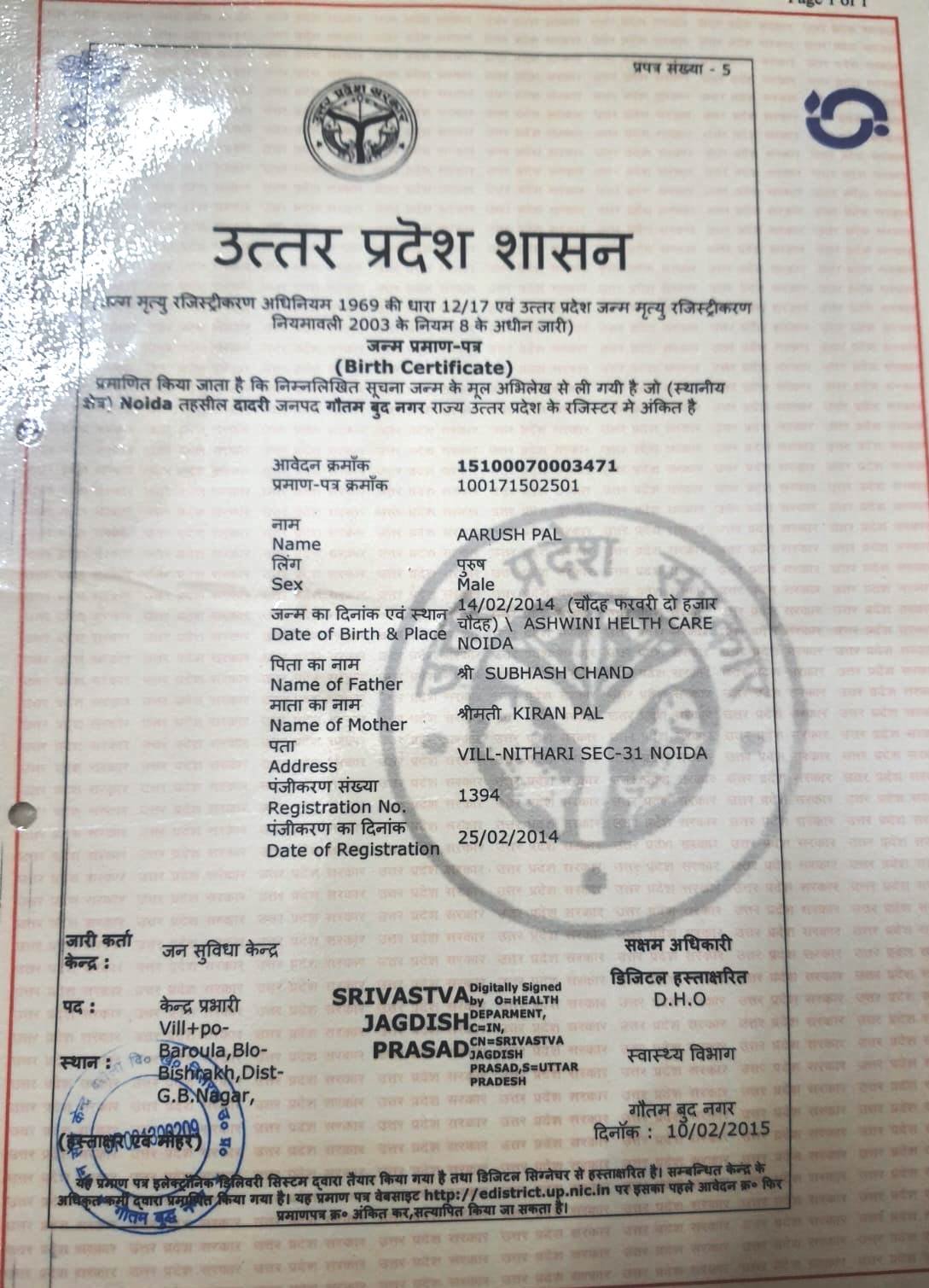 | Father's Name | SUBHASH CHAND | Gender | Male | Date of Birth | 14-02-2014 |