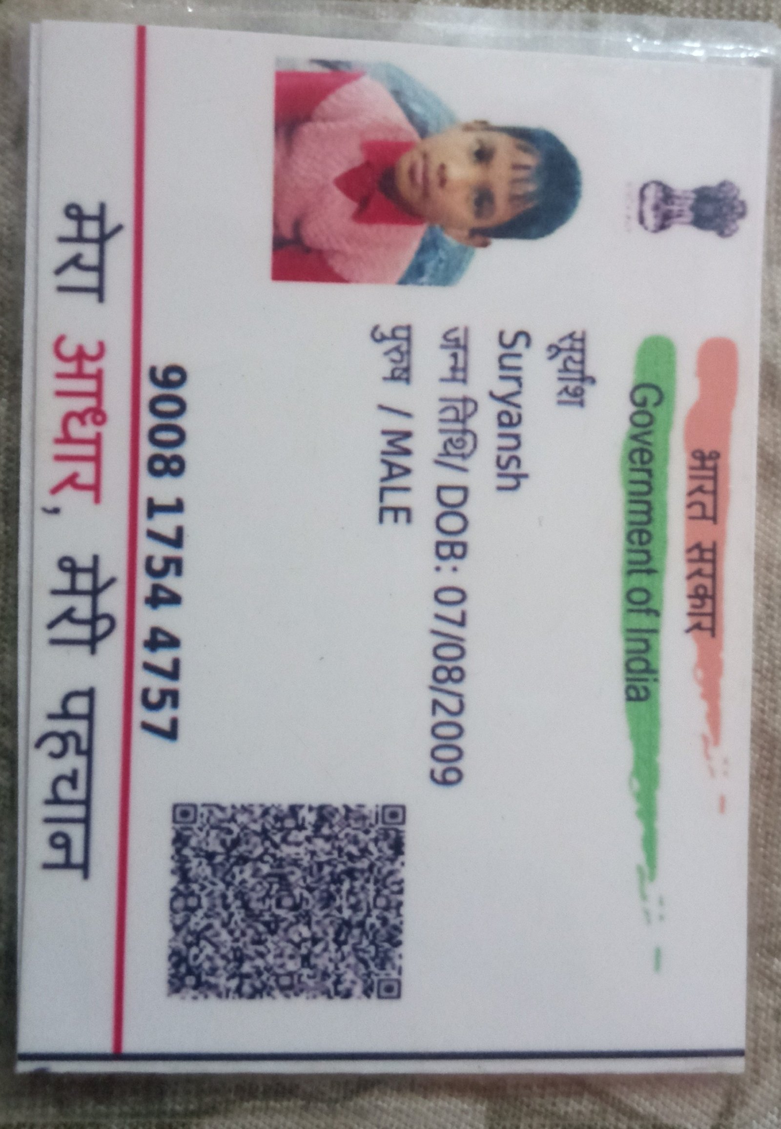 | Father's Name | Rajesh Kumar | Gender | Male | Date of Birth | 07-08-2009 |