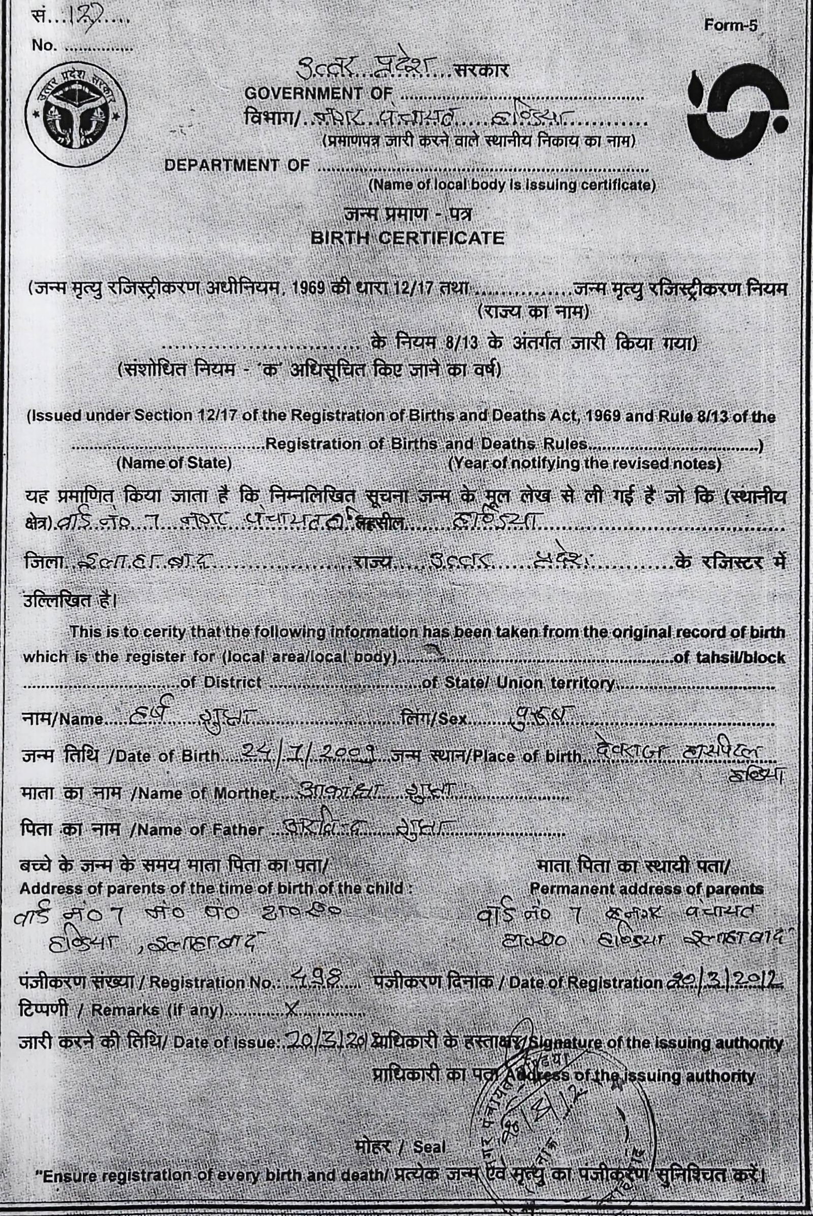 | Father's Name | Arvind Kumar Gupta | Gender | Male | Date of Birth | 24-01-2009 |