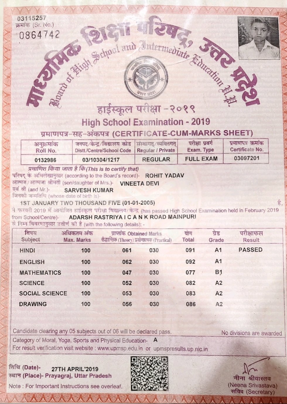| Father's Name | Sarvesh kumar | Gender | Male | Date of Birth | 01-01-2005 |