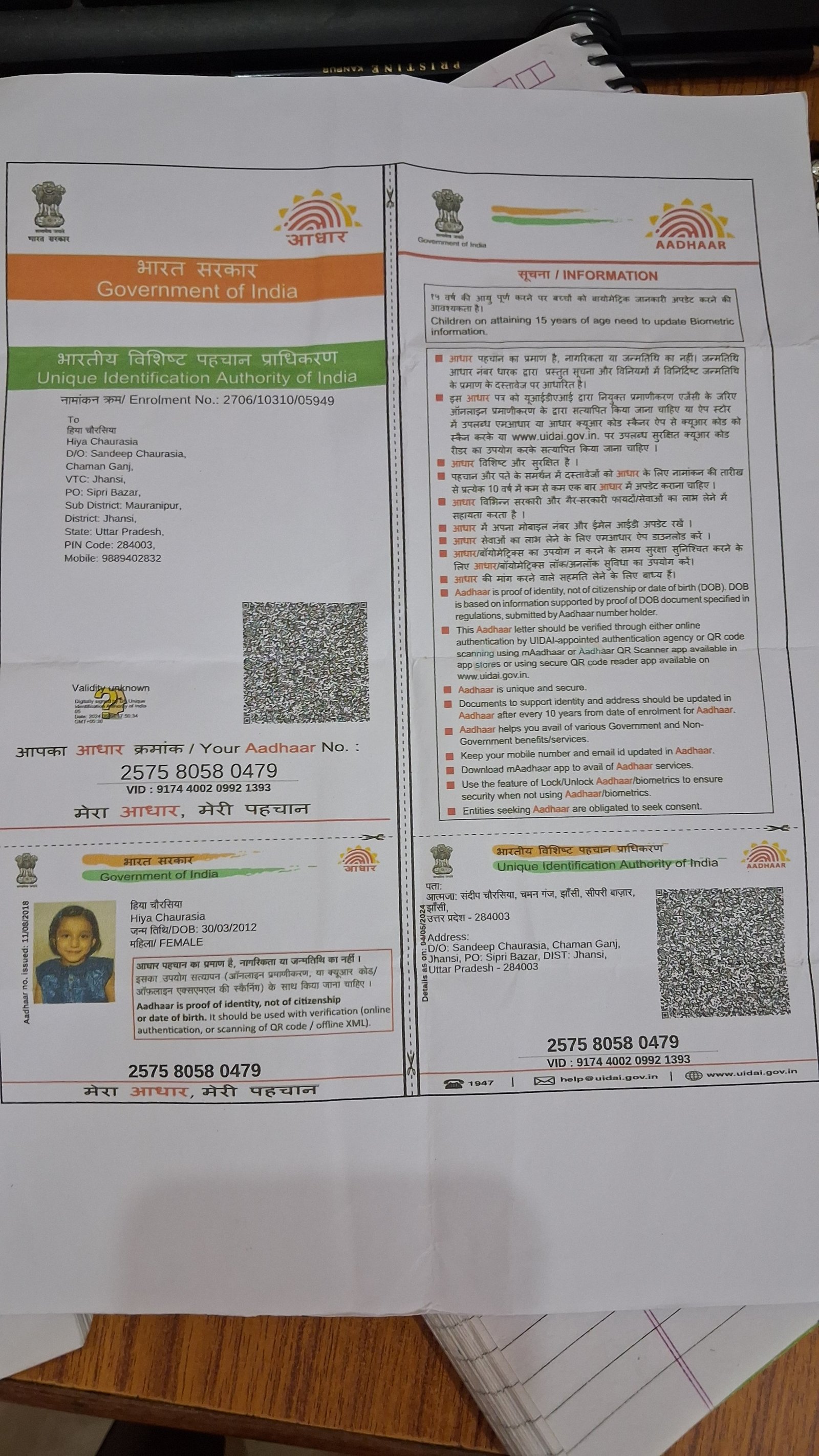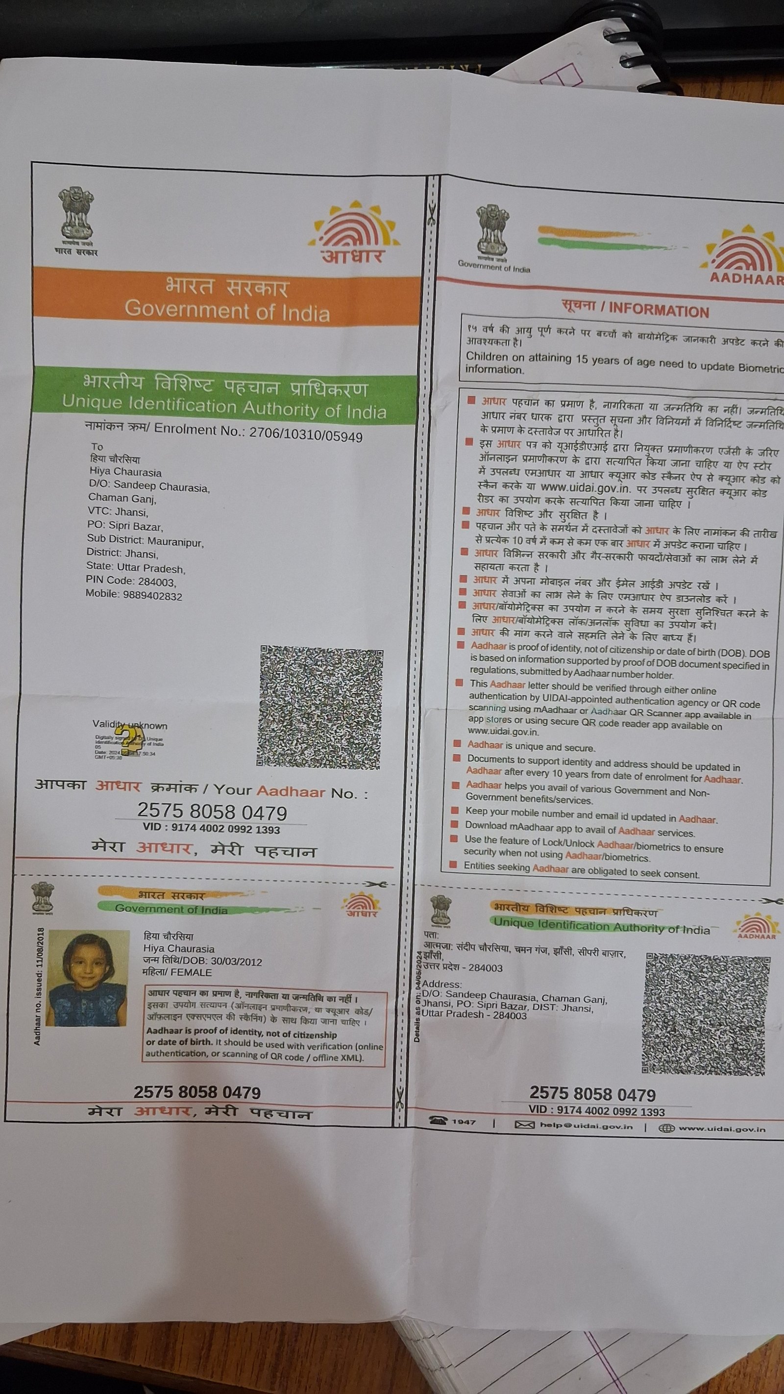 | Father's Name | Sandeep chaurasia | Gender | Female | Date of Birth | 30-03-2012 |