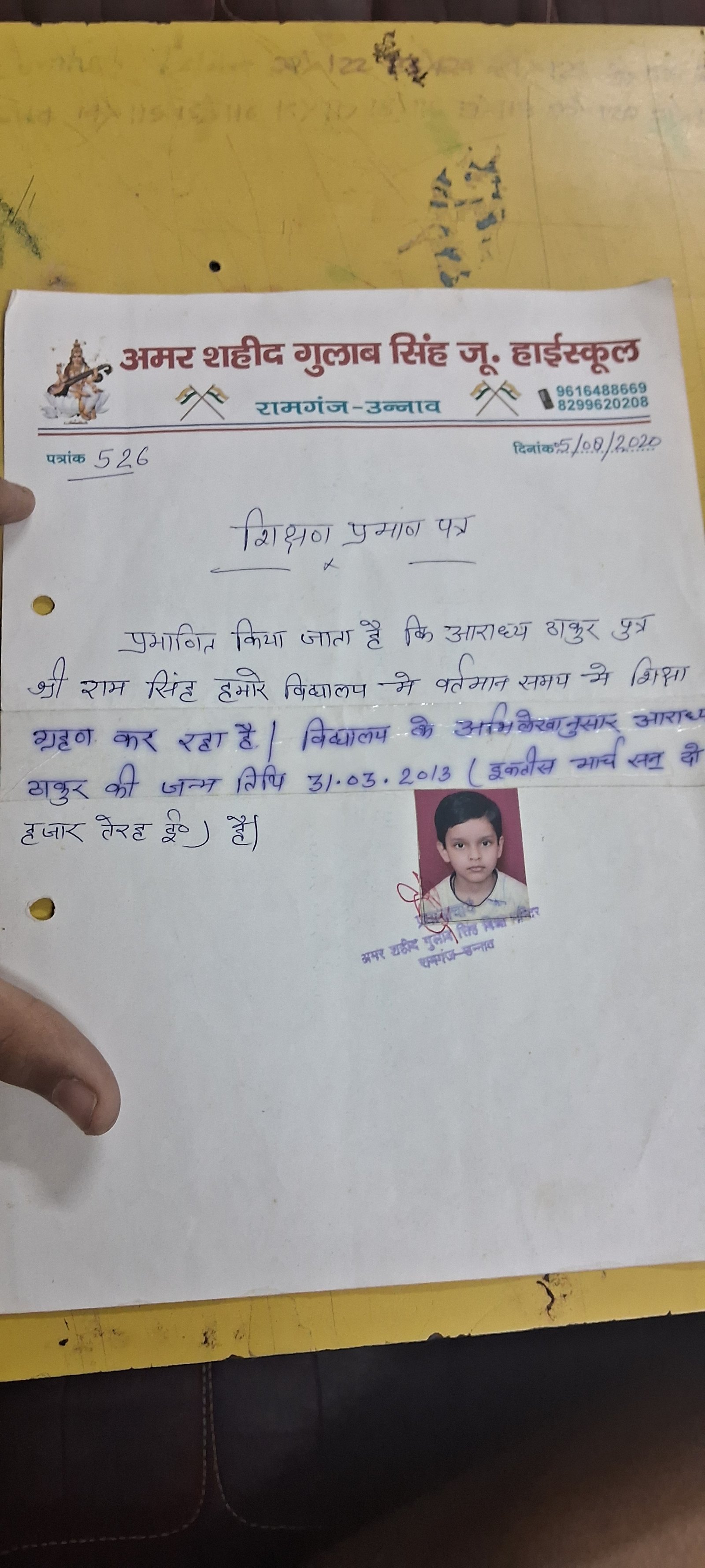 | Father's Name | Ram Singh | Gender | Male | Date of Birth | 31-03-2013 |