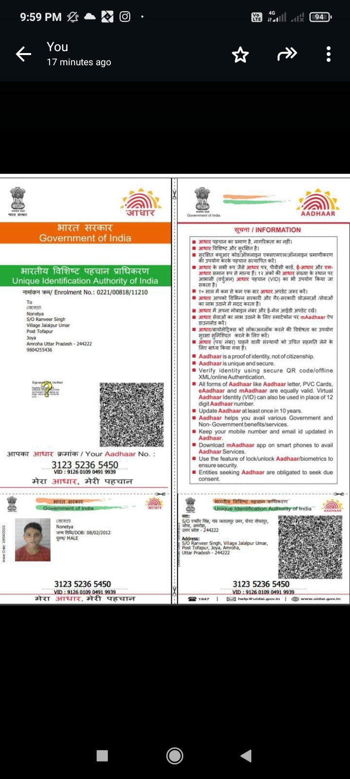 Player Aadhar Card