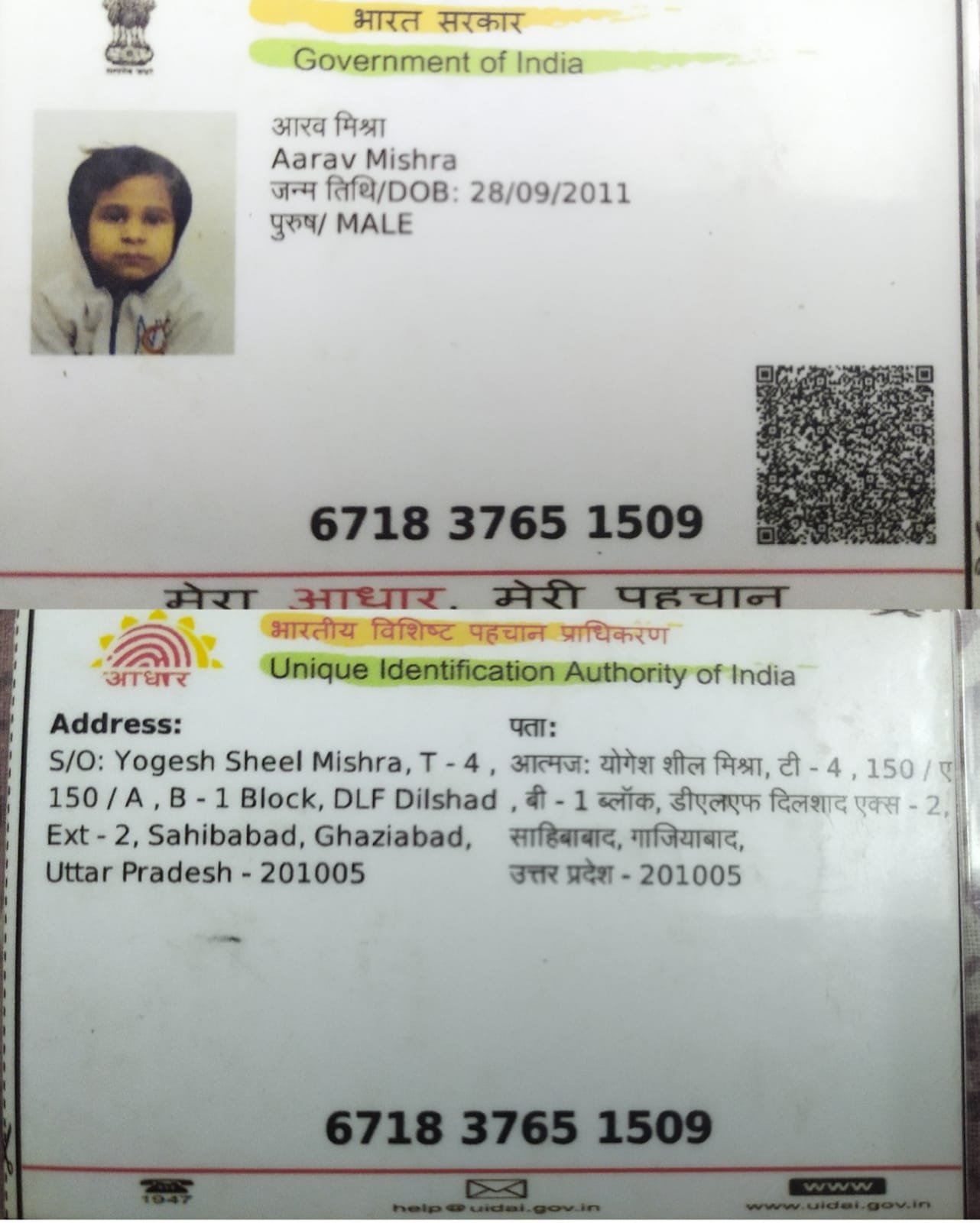 | Father's Name | Yogesh Sheel Mishra | Gender | Male | Date of Birth | 28-09-2011 |