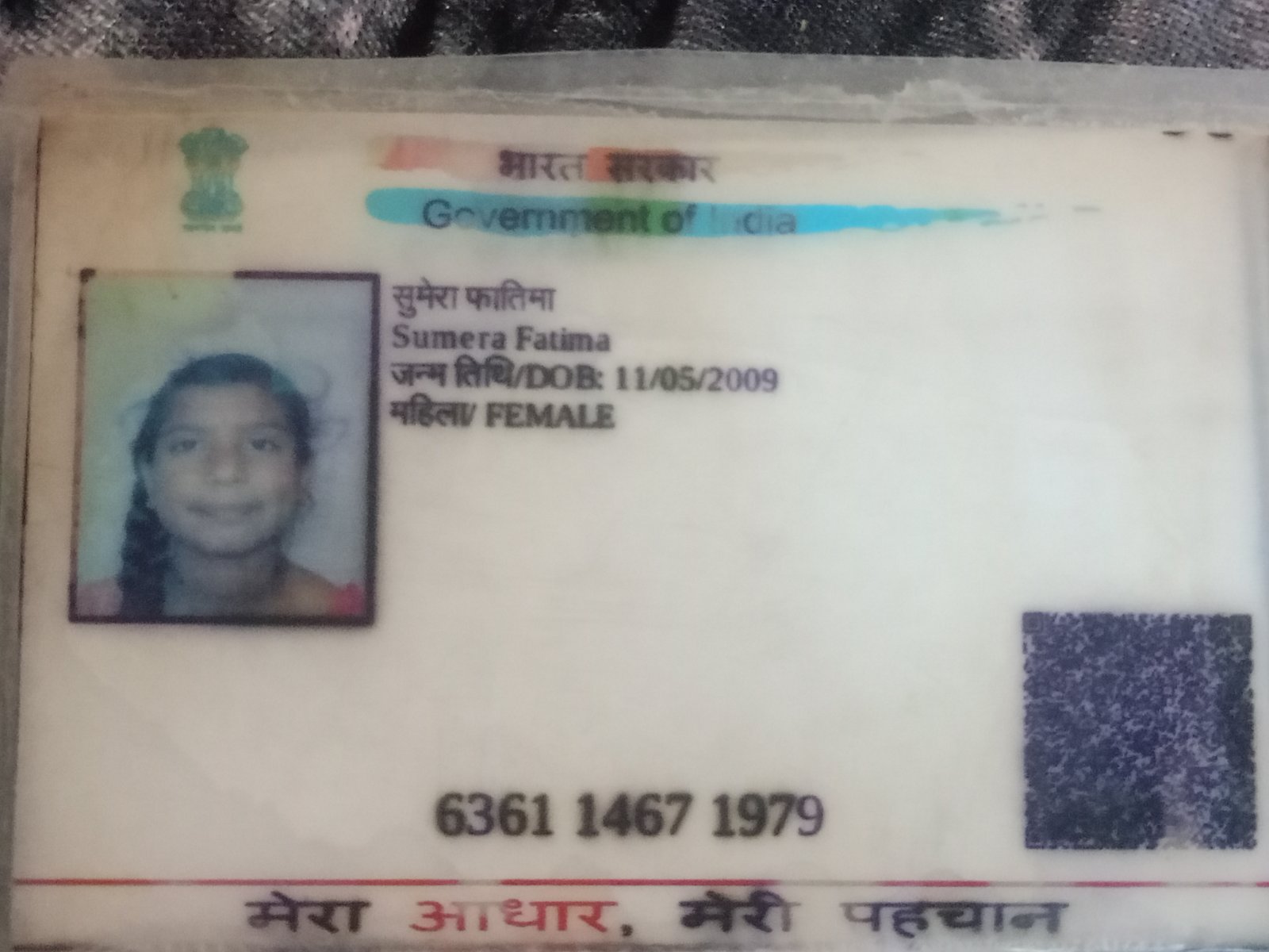 | Father's Name | Dost Mohd | Gender | Female | Date of Birth | 11-05-2009 |
