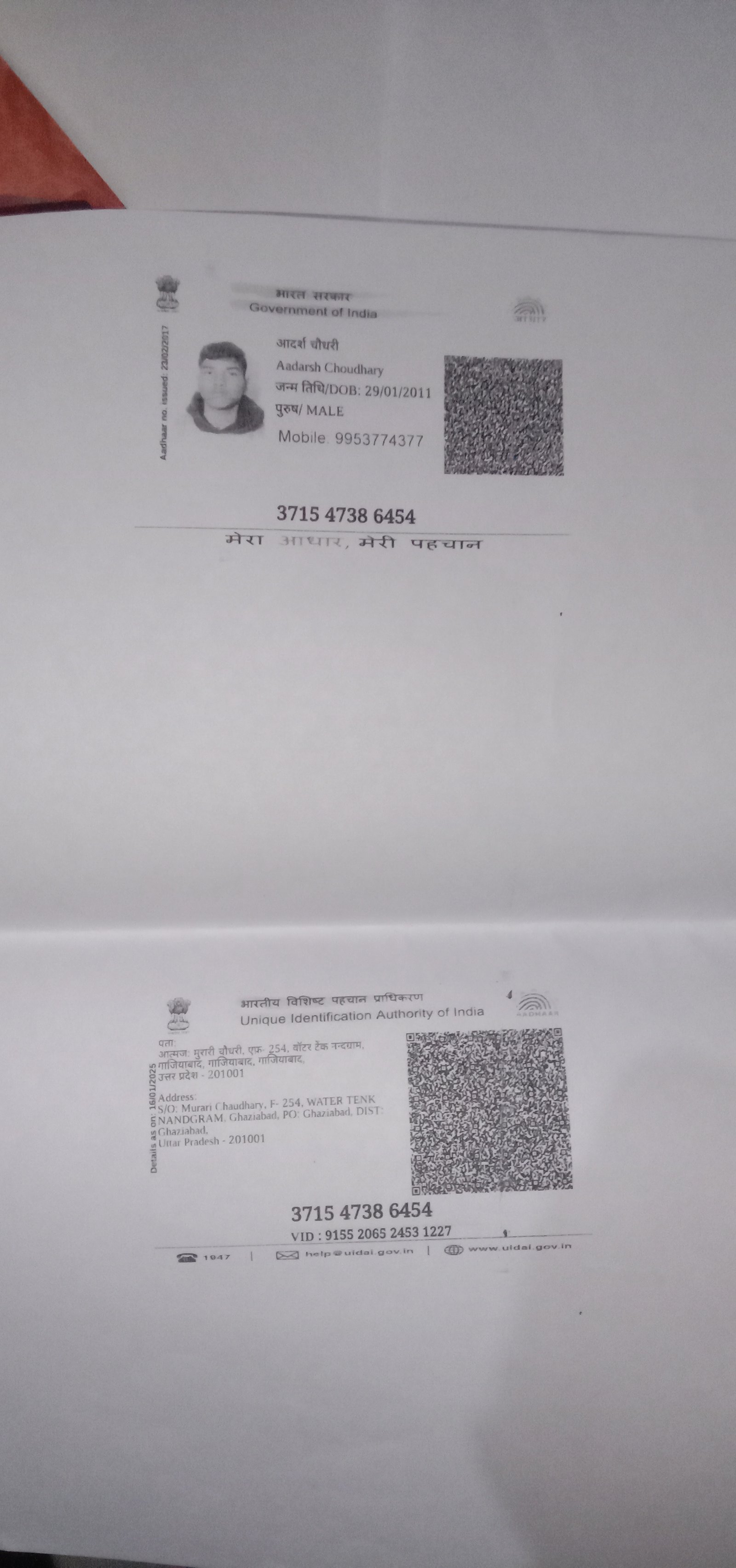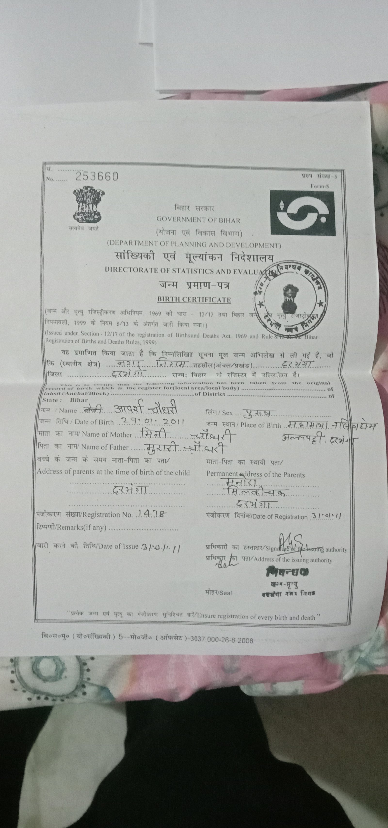| Father's Name | Murari choudhary | Gender | Male | Date of Birth | 29-01-2011 |