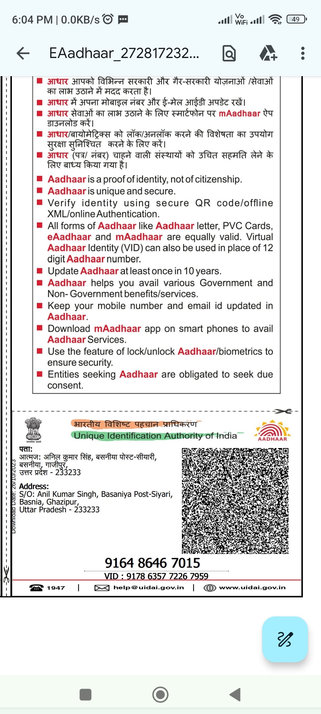 | Father's Name | Dr Anil kumar Singh | Gender | Male | Date of Birth | 10-01-2012 |
