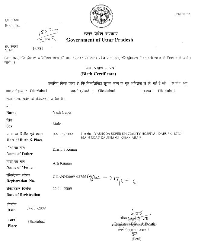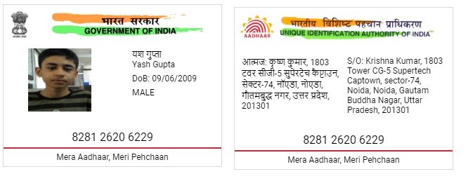 | Father's Name | Krishna Kumar | Gender | Male | Date of Birth | 09-06-2009 |