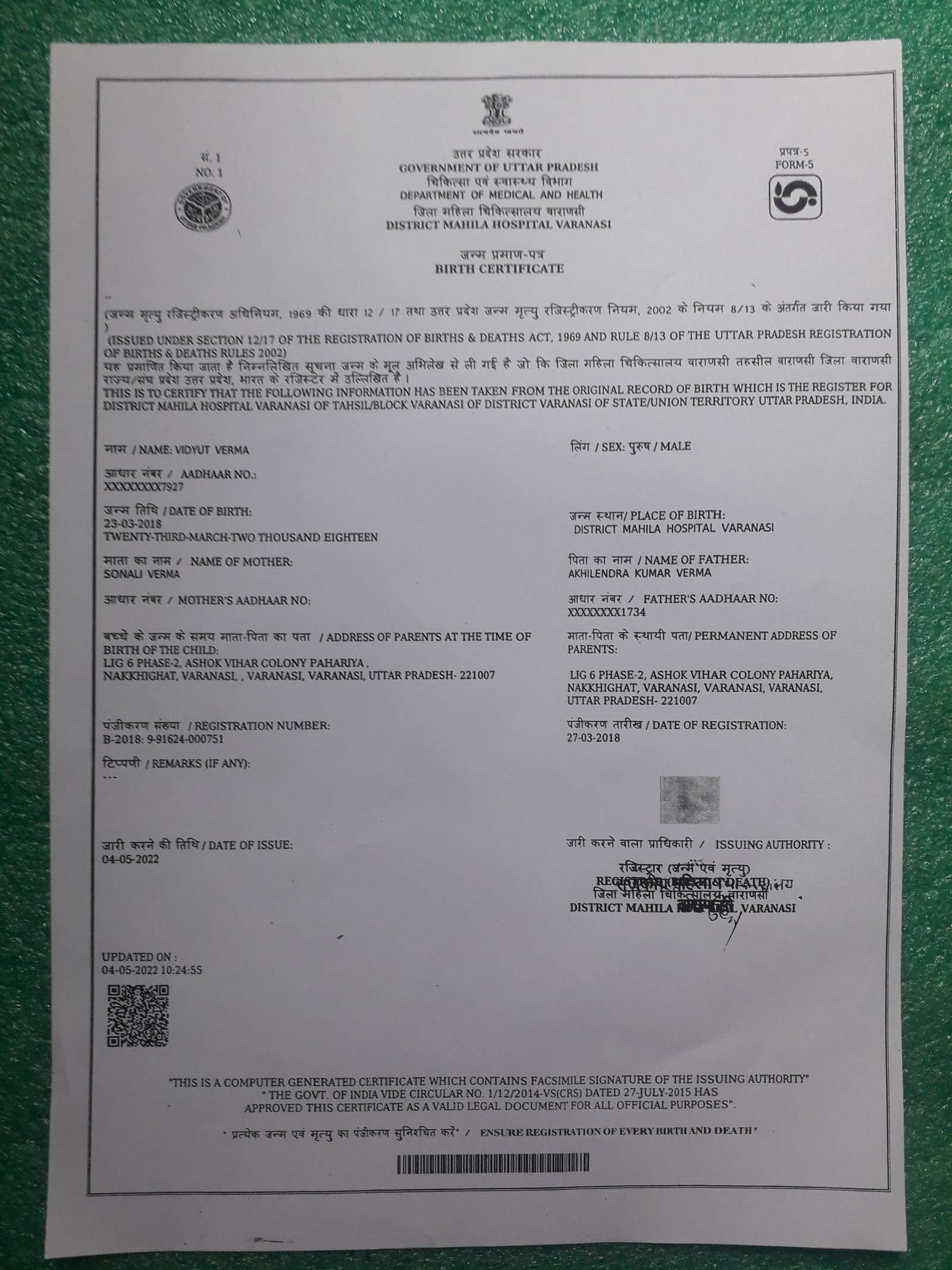 | Father's Name | Akhilendra Kumar verma | Gender | Male | Date of Birth | 23-03-2018 |