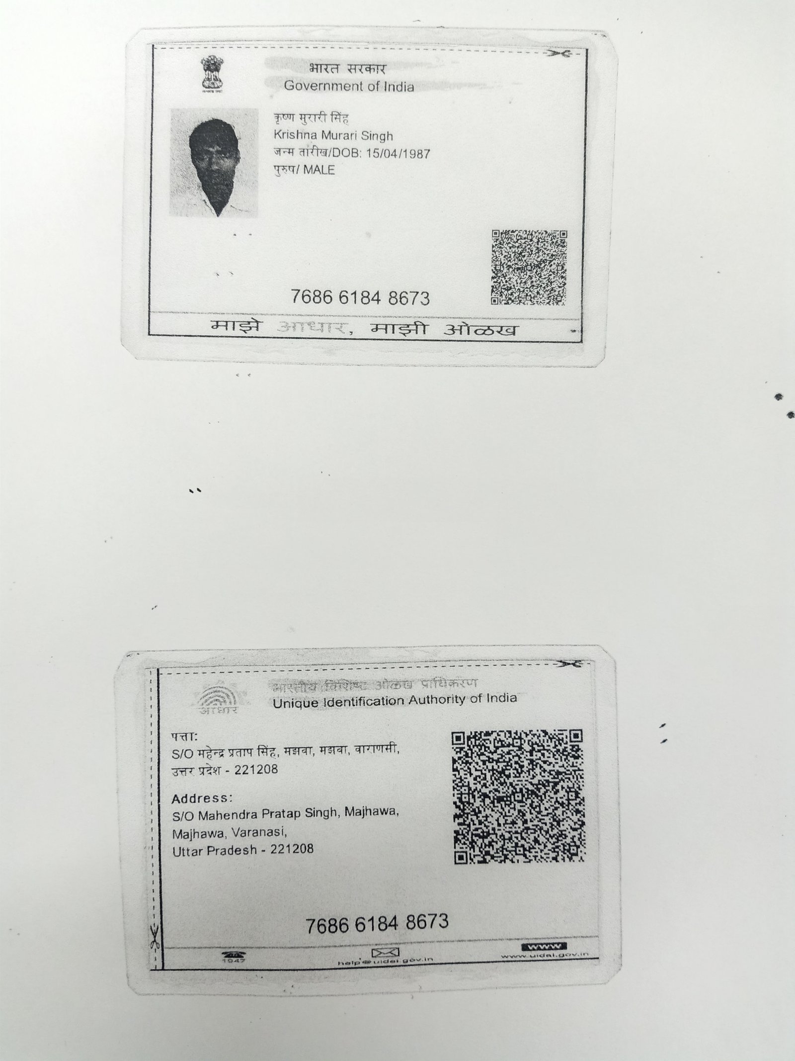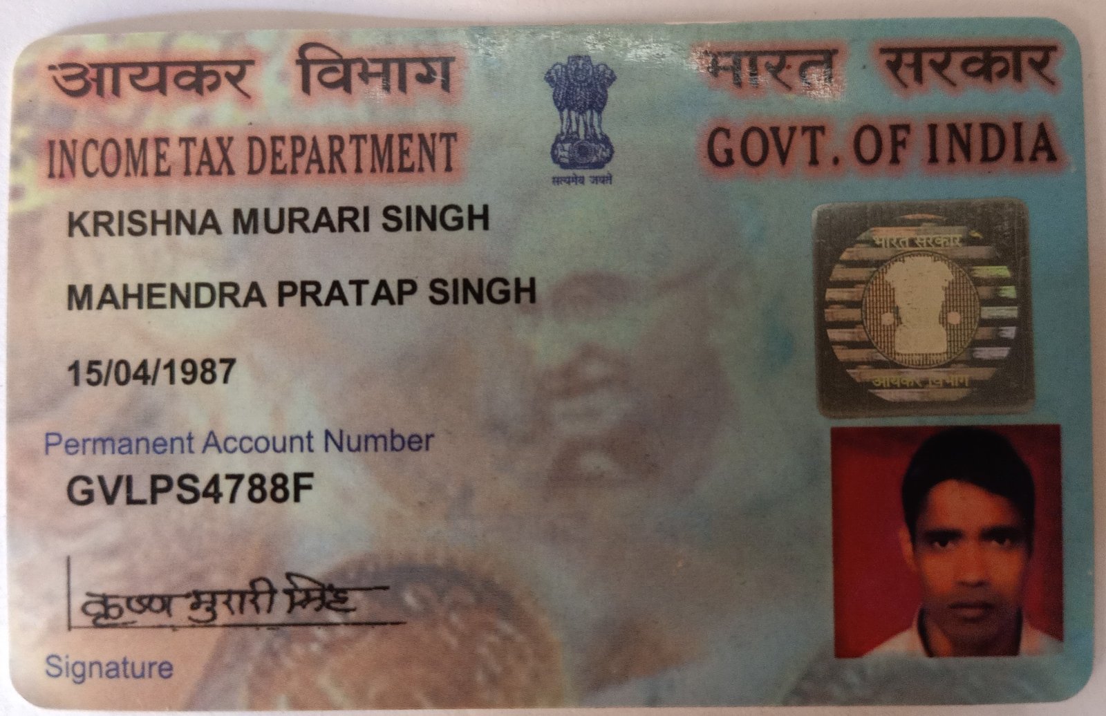 | Father's Name | M P Singh | Gender | Male | Date of Birth | 15-04-1987 |