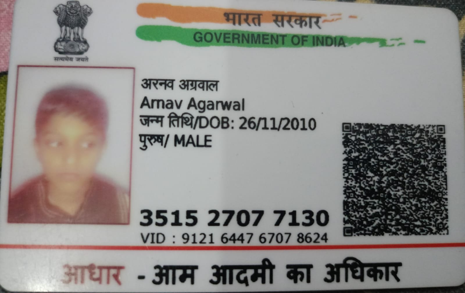 | Father's Name | Vikram Agarwal | Gender | Male | Date of Birth | 26-11-2010 |
