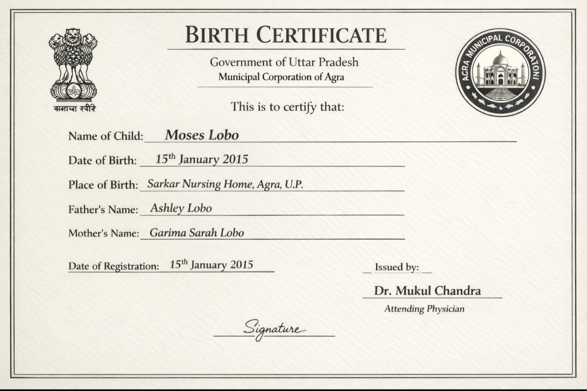 | Father's Name | Ashley | Gender | Male | Date of Birth | 15-01-2015 |