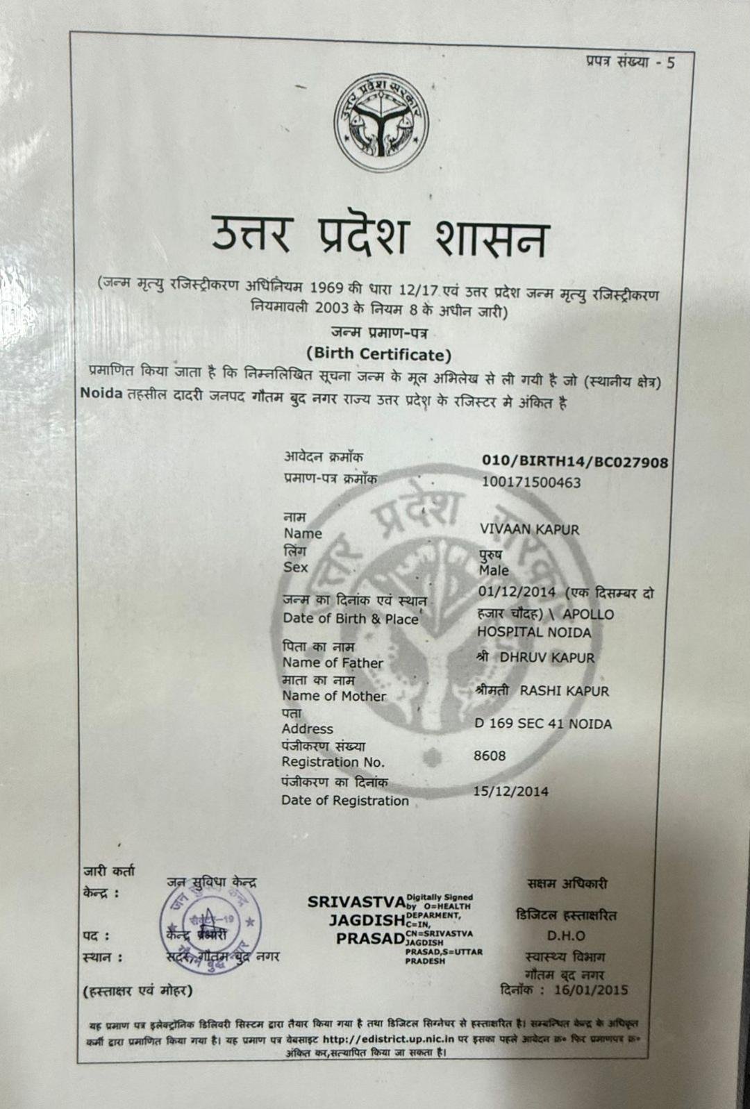| Father's Name | Dhruv Kapur | Gender | Male | Date of Birth | 01-12-2014 |