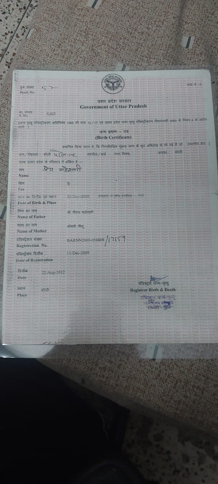 | Father's Name | Neeraj Maheshwari | Gender | Male | Date of Birth | 25-11-2009 |