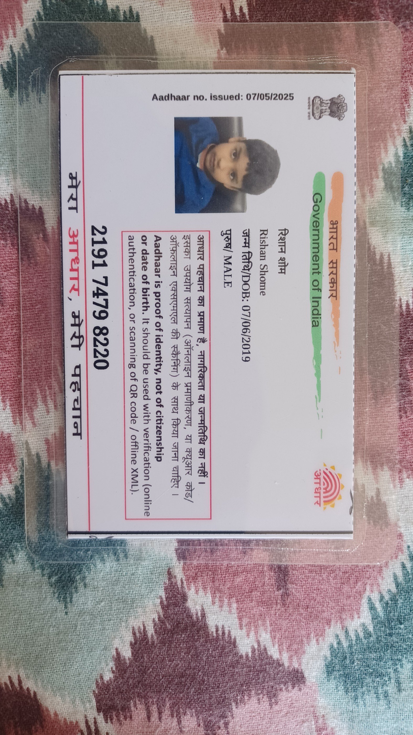 | Father's Name | Rohon Shome | Gender | Male | Date of Birth | 07-06-2019 |