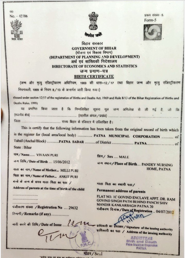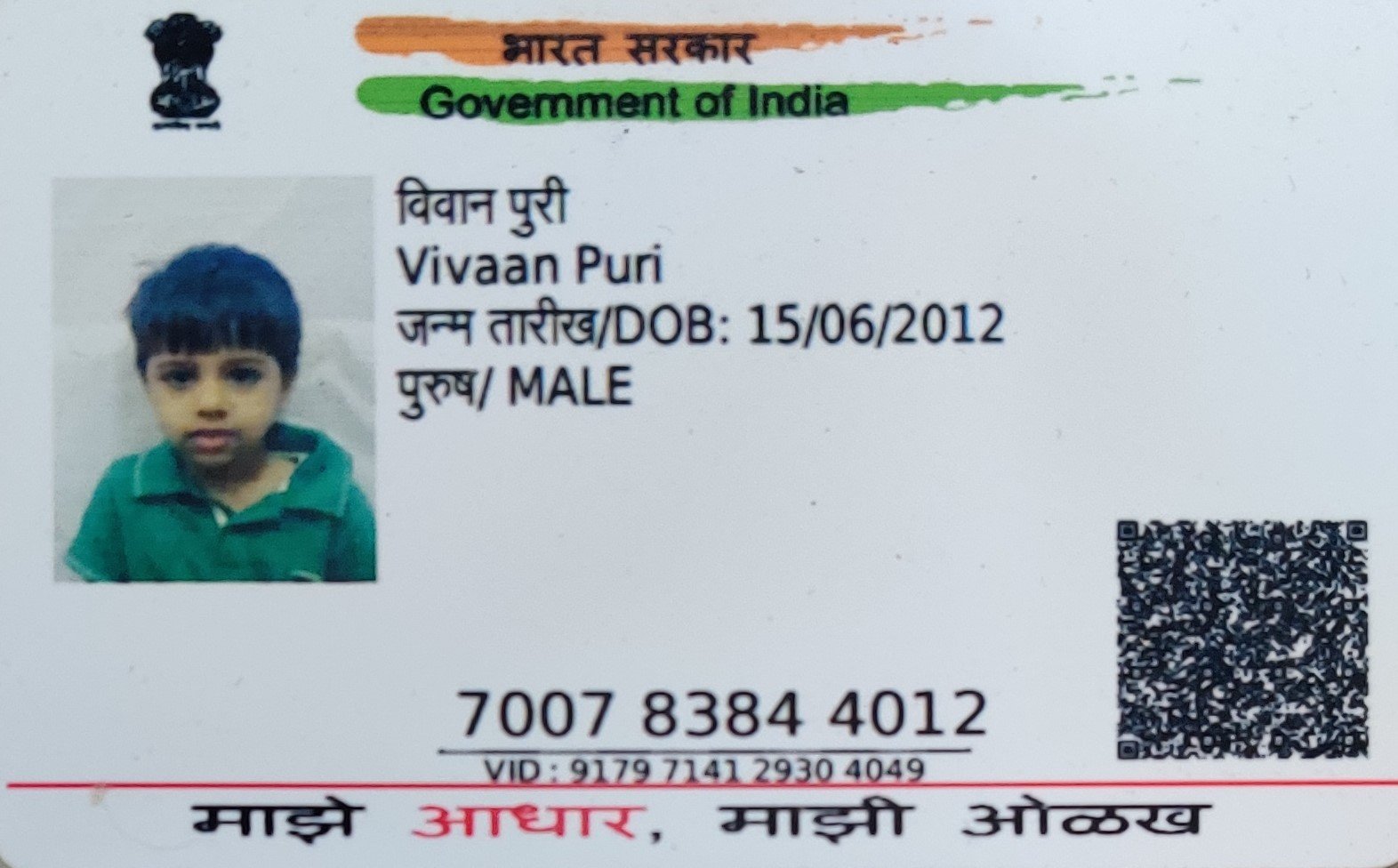 | Father's Name | ANKIT PURI | Gender | Male | Date of Birth | 15-06-2012 |