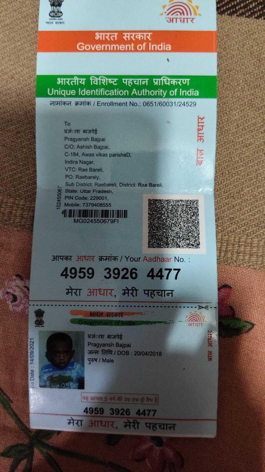 | Father's Name | Ashish Bajpai | Gender | Male | Year of Birth | 2018 |